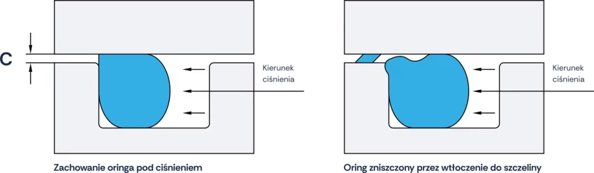 - Zbyt duża szczelina zwiększa ryzyko wniknięcia oringa w szczelinę i tym samym uszkodzeniu