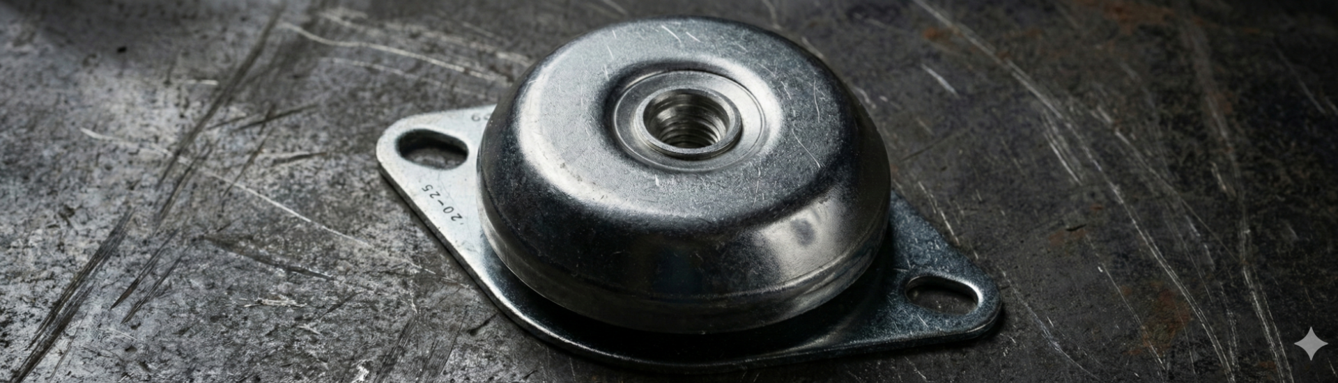 Wibroizolator Daszkowy Podstawa kwadratowa 180183/85: M20. Twardość: 40 ShA, 50 ShA, 60 ShA Materiał: Cześć gumowa: Guma naturalna NR, Część metalowa: Stal ocynkowana, Temperatura stosowania: -40/+80 (°C),