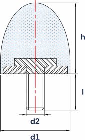 Wibroizolator (Odbojnik) Paraboliczny Typ PA-D (średnica od 10 do 118 mm): M5, M6, M8, M10, M12, M16 Twardość: 35, 40, 45, 50, 55, 60, 65, 70, 75, (ShA), Materiał: CR, NR, NBR, EPDM, Silikon VMQ, Część metalowa: Stal ocynkowana lub Stal nierdzewna A2 lub A4.